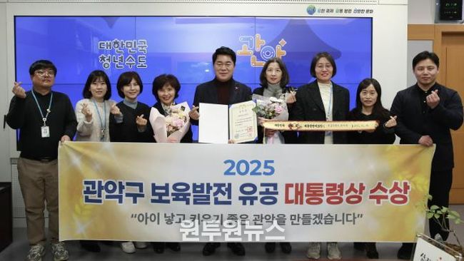 (원투원뉴스) 관악구가 '2025년 보육발전 유공 정부포상'에서 대통령상을 수상하며 전방위적 보육 정책의 우수성을 인정받았다.