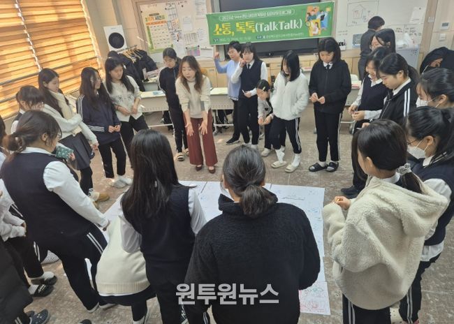 (원투원뉴스) 경상북도영덕교육지원청 Wee센터는 2025년 12월 17일과 19일 이틀간 영덕여자중학교 1학년 46명을 대상으로'소통, 톡톡(Talk,Talk)'집단상담을 운영했다.