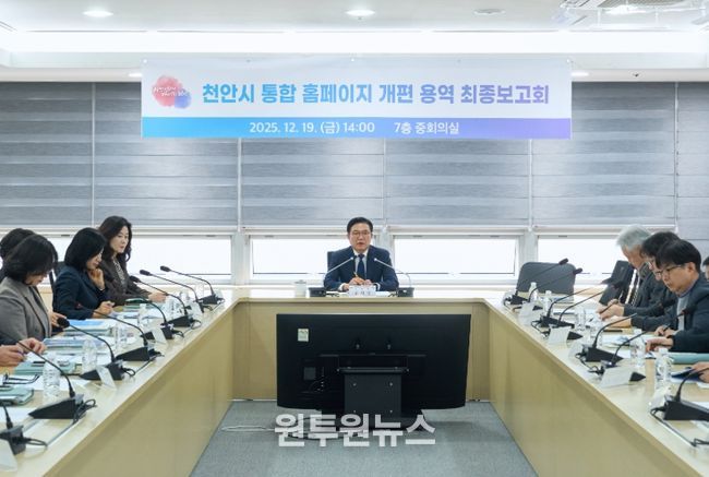 (원투원뉴스) 천안시는 19일 시청 중회의실에서 ‘천안시 통합 홈페이지 개편 용역 최종보고회’를 개최했다.