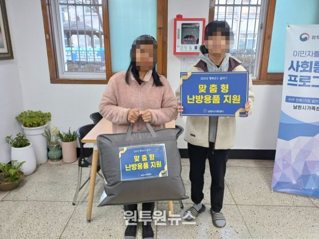 (원투원뉴스) 남원시가족센터는 지난 19일 KB국민은행의 후원으로 지역 내 취약·위기가정 10가구를 대상으로 ‘2025년 맞춤형 난방용품 지원 사업’을 추진했다고 밝혔다.