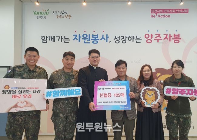(원투원뉴스) 양주시자원봉사센터는 천주교 군종교구 오뚜기 성당(제8기동사단) 오형훈 군종신부와 군 장병들이 연말을 맞아 헌혈증 105장을 기부했다고 밝혔다.