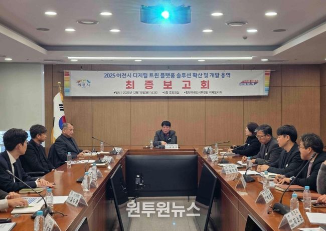 (원투원뉴스) 이천시는 12월 19일 시청 5층 중회의실에서 ‘2025년 이천시 디지털 트윈 플랫폼 솔루션 확산 및 개발 최종보고회’를 개최했다.