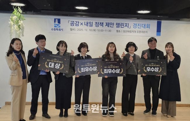 (원투원뉴스) 수원특례시가 개최한 ‘2025 공무원 대상 제안 공모전 '공감×내일 정책 제안 챌린지' 경진대회’에서 ‘신(新)사장 과태료 0원 프로젝트(찾아가는 원산지 안심 컨설팅)’가 대상을 받았다.