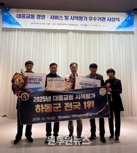 (원투원뉴스) 하동군은 지난 19일 서울 그랜드힐컨벤션에서 열린 ‘2025년 대중교통 시책평가 시상식’에서 전국 76개 군 단위 지방자치단체 가운데 종합 1위를 차지하며 국토교통부 장관상을 수상했다.