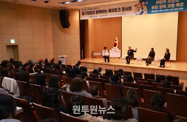 (원투원뉴스) 울산 동구육아종합지원센터는 12월 19일 오전 10시 동구청 중강당에서 관내 영유아 부모 및 지역사회 관계자 120여 명을 대상으로 ‘아이 키우기 좋은 MOM 편한 동구 만들기’라는 주제로 구청장과 함께하는 육아 토크 콘서트를 개최했다.
