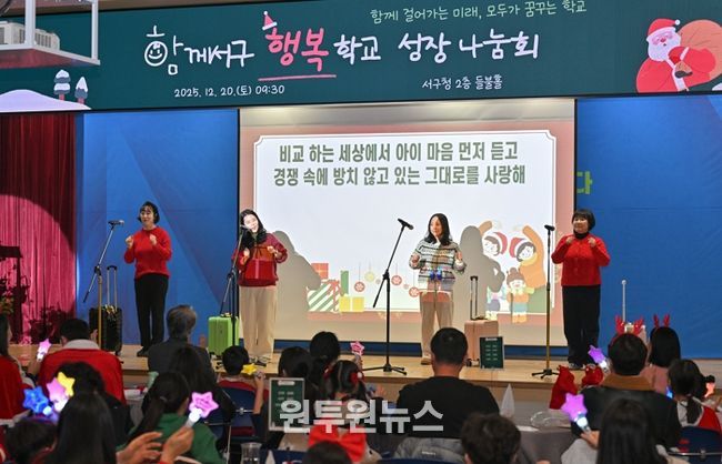 이날 성장 나눔회에는 김이강 서구청장을 비롯해 행복학교 참여 가족 등 100여 명이 참석해 1년간의 배움과 변화를 되돌아보며 서로의 성장을 공유했다.