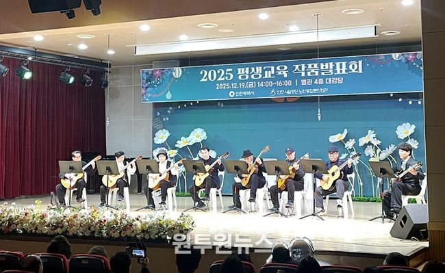 (원투원뉴스) 인천시설공단 인천노인종합문화회관은 지난 19일 수강생 및 지역 주민 등 400여 명이 참석한 가운데, 한 해 동안의 교육 프로그램 성과를 공유하는 『2025년 평생교육 프로그램 작품발표회』를 개최했다.