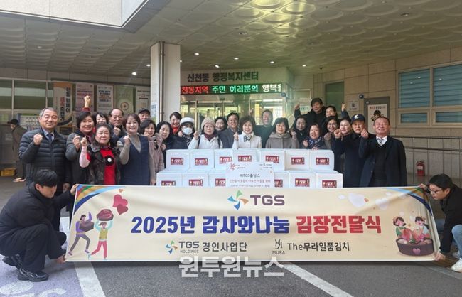 (원투원뉴스) ㈜TGS홀딩스 경인사업단은 지난 12월 19일 신천동 행정복지센터에 김장 김치 500kg을 전달하며 연말을 맞아 지역사회 나눔에 동참했다.