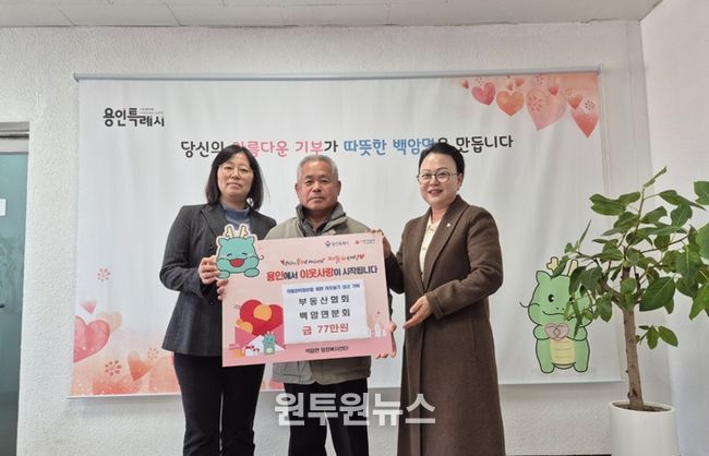 처인구 백암면 행정복지센터에는 지난 10일 공인중개사협회 백암면분회가 이웃돕기 성금 77만원을 기탁했고, 15일에는 ㈜오엠코리아가 300만원을 기탁했다.