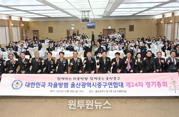 (원투원뉴스) 울산중구자율방범연합대(대장 이종혁)가 12월 19일 오후 7시 중구청 대회의실에서 제24회 정기총회를 개최했다.
