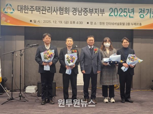 (원투원뉴스) 창원특례시는 19일 창원 인터내셔널호텔(성산구 중앙동)에서 열린 대한주택관리사협회 경남중부지부 정기총회에서, 공동주택 관리 신뢰도 향상에 기여한 공로를 인정받아 대한주택관리사협회 경남중부지부로부터 감사패를 전달받았다고 밝혔다.