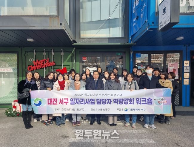 (원투원뉴스) 대전 서구는 ‘2025년 일자리대상’ 표창 수상을 기념해, 서울 성동구 일원에서 일자리 사업 담당자 역량 강화 워크숍을 개최했다고 22일 전했다.