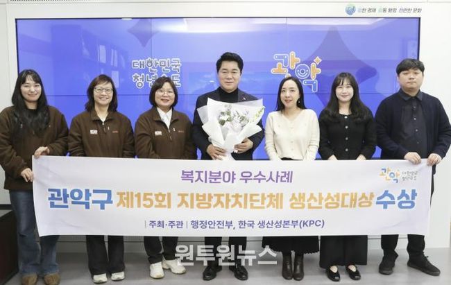 (원투원뉴스) 관악구가 행정안전부 주최 ‘제15회 지방자치단체 생산성대상’에서 복지 분야 우수사례로 선정되어 한국생산성본부 회장 표창을 수상하는 쾌거를 거두었다.