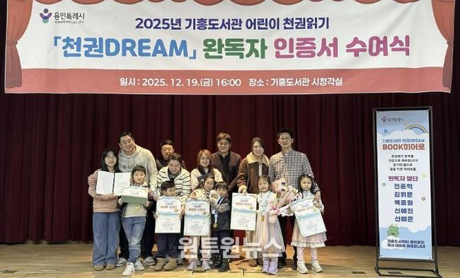 (원투원뉴스) 용인특례시 기흥도서관은 19일 기흥도서관 시청각실에서 ‘천권DREAM 완독자 인증서 수여식’을 개최했다고 22일 밝혔다.