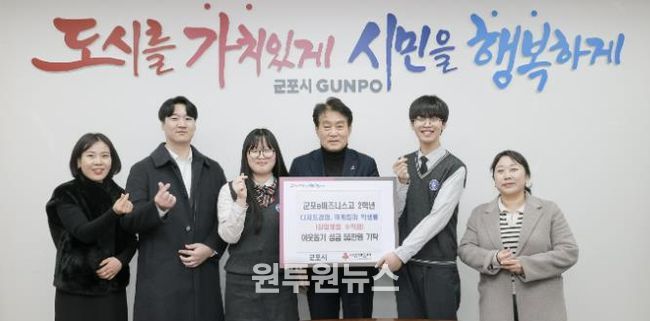 하은호 군포시장은 “지난 10월에 이어 연말에도 군포e비즈니스고 학생들이 어려운 이웃을 위해 따뜻한 나눔을 실천하여 주심에 깊이 감사드린다”며 “이러한 청소년들의 선한 영향력이 지역사회 전체에 기부문화로 확산되길 바란다”고 말했다.