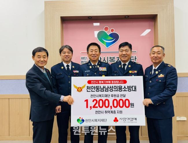 (원투원뉴스) (재)천안시복지재단은 22일 천안동남소방서 동남남성의용소방대가 성금 120만 원을 기탁했다고 밝혔다.