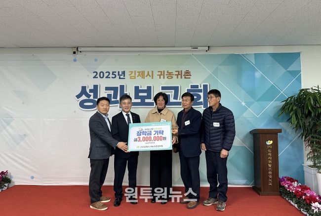 정성주 김제시장은“귀농귀촌인들이 안정적으로 정착하고 성장할 수 있도록 지속적인 관심과 지원을 아끼지 않을 것이며, 지역 인재 양성을 위해 뜻깊은 후원을 해주신 김제시 귀농귀촌협의회에 깊이 감사드린다”고 전했다.