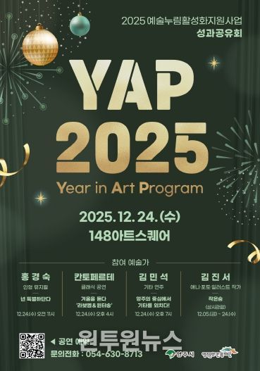 (원투원뉴스) (재)영주문화관광재단은 오는 12월 24일 148아트스퀘어에서 크리스마스 컨셉의 ‘2025 예술누림활성화 지원사업 성과공유회 'YAP 2025'’를 개최할 예정이다.