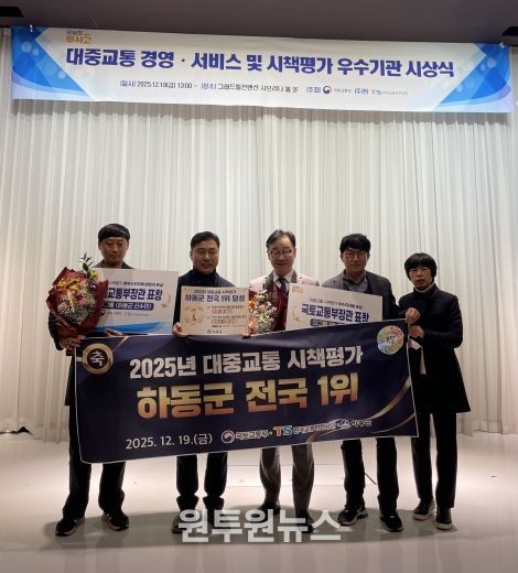 (원투원뉴스) 하동군은 지난 19일 서울 그랜드힐컨벤션에서 열린 ‘2025년 대중교통 시책평가 시상식’에서 전국 76개 군 단위 지방자치단체 가운데 종합 1위를 차지하며 국토교통부 장관상을 수상했다.