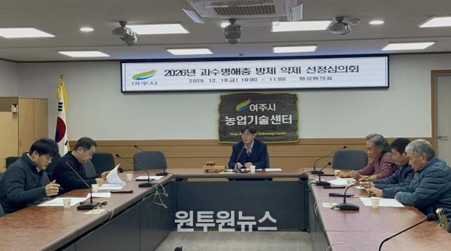 (원투원뉴스) 여주시는 12월 19일 여주시농업기술센터에서 2026년 과수 병해충(화상병, 돌발병해충) 예방을 위한 방제 약제 선정심의회를 개최했다.