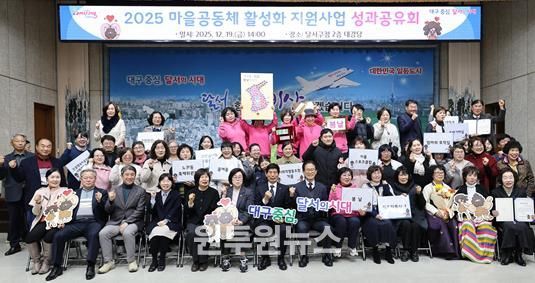 (원투원뉴스) 대구 달서구는 지난 19일 달서구청 대강당에서 '2025 마을공동체 활성화 지원사업 성과공유회'를 개최하고, 한 해 동안 주민 주도로 추진된 마을공동체 사업의 성과를 공유했다.