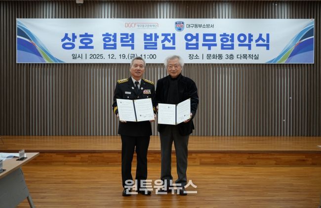 (원투원뉴스) (재)대구광역시동구문화재단(이사장 윤석준)과 대구동부소방서가 지난 12월 19일, 지역 문화시설의 안전관리 강화와 재난 대응 협력 구축을 위한 업무협약(MOU)을 체결했다.