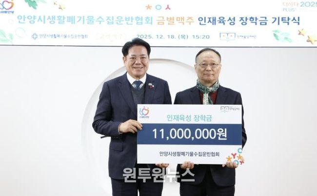 (원투원뉴스) 안양시인재육성재단은 연말을 맞아 지역 기업 및 사회단체의 따뜻한 장학금 기탁 행렬이 이어지고 있다고 22일 밝혔다.