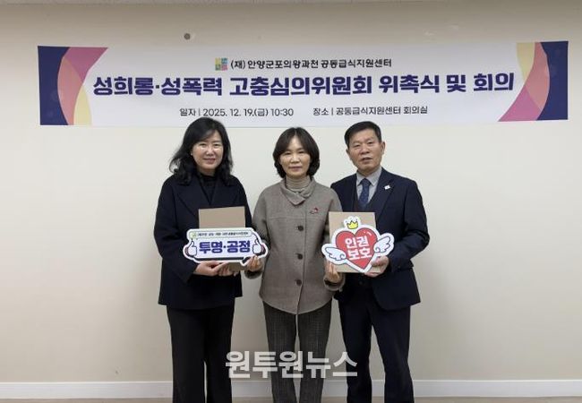 (원투원뉴스) (재)안양군포의왕과천 공동급식지원센터는 지난 19일 재단 내 성희롱성폭력 사건에 대한 공정하고 전문적인 처리체계를 구축하기 위해 ‘성희롱·성폭력 고충심의위원회’를 구성하고 위촉식을 개최했다고 22일 밝혔다.