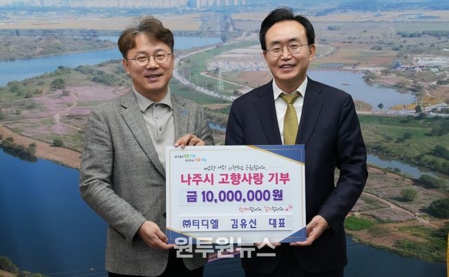 (원투원뉴스) 전라남도 나주시는 ㈜티디엘 김유신 대표가 지역 발전을 응원하기 위해 고향사랑기부금 1천만 원을 기탁했다고 22일 밝혔다.