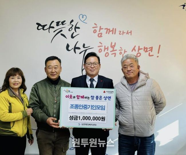 서태원 상면장은 “어려운 이웃을 먼저 생각해 성금을 기탁해 준 조종안중기인모임 여러분께 깊은 감사의 말씀을 드린다”며 “이번 성금이 우리 면의 복지사각지대 해소에 도움이 되고, 지역사회가 한층 더 따뜻해지는 계기가 되길 바란다”고 전했다.