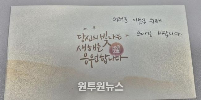 (원투원뉴스) 양평군 양서면은 연말을 맞아 양서면 주민들이 조용히 이웃돕기 성금을 전달하며 지역사회에 큰 감동을 주고 있다고 밝혔다. 주민들은 “선행은 드러내지 말라”는 뜻처럼 이름을 밝히지 않은 채 자발적으로 모은 기부금을 전달해 도움이 필요한 이웃들에게 따뜻한 온정을 전하고 있다.