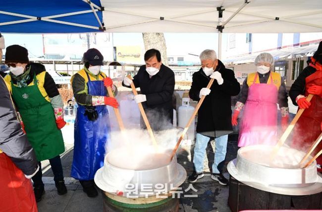 (원투원뉴스) 김천시는 12월 22일 오전 10시, 한 해 중 밤이 가장 긴 동지를 맞아 김천역 광장에서 ‘동지 맞이 팥죽 나누기 행사’를 개최했다.