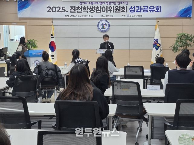 (원투원뉴스) 진천교육지원청은 2025년 12월 22일, 진천교육지원청 온누리홀에서 '2025. 진천학생참여위원회 성과공유회'를 개최했다.
