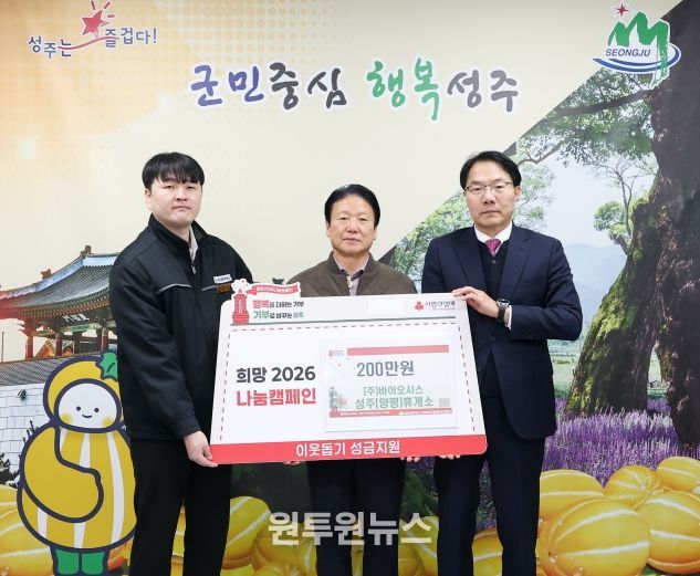 (원투원뉴스) ㈜바이오시스 성주(양평, 창원)휴게소(소장 조희규)에서는 12월 22일(월) 관내 취약계층을 위한 성금 200만 원을 기탁하며 희망2026나눔캠페인에 동참했다.