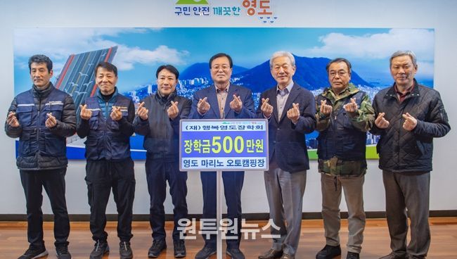(원투원뉴스) 영도 마리노 오토캠핑장(기간제근로자 일동)은 지난 12월 19일 영도구청을 방문하여 우수한 지역인재 양성을 위해 (재)행복영도장학회에 500만 원을 기탁했다.