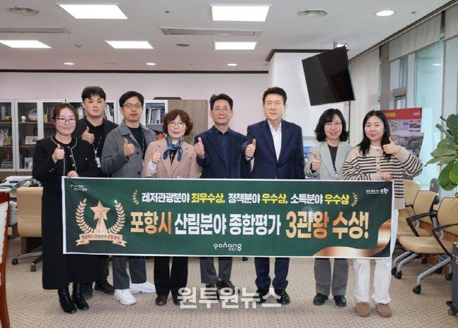 (원투원뉴스) 포항시가 2025년 경상북도 주관 산림분야 시군 종합평가에서 산림레저관광 분야 최우수, 산림소득 분야 우수, 산림정책 분야 우수를 수상하며 산림행정 전 분야를 석권하는 성과를 거뒀다.