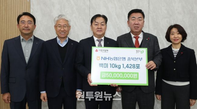 임세빈 NH농협은행 충북본부장은 “연말을 맞아 도움이 필요한 이웃들에게 희망과 온기를 전하고자 이번 기탁을 마련했다”며 “앞으로도 지역사회 복지 증진을 위해 다양한 사회공헌 활동을 지속해 나가겠다”고 말했다.