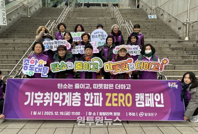 (원투원뉴스) 매서운 한파가 반복되는 겨울, 동대문구가 ‘현장형’ 대응에 나섰다. 서울 동대문구는 겨울철 한랭질환에 취약한 어르신의 건강 피해를 줄이고, 난방기 사용이 늘어나는 계절에 생활 속 탄소중립 실천을 확산하기 위해 ‘기후 취약계층 한파 ZERO 캠페인’을 추진한다고 밝혔다.