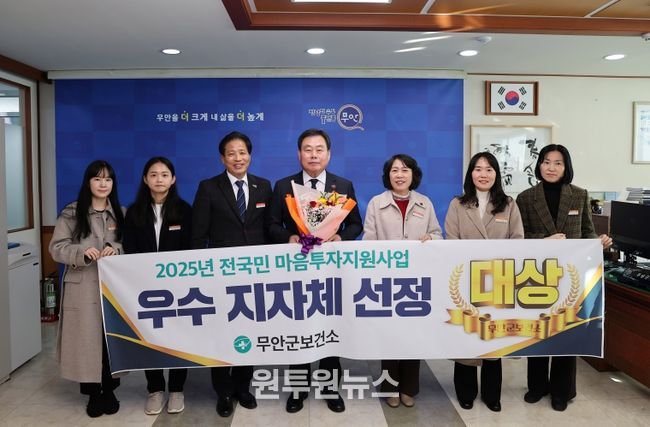 (원투원뉴스) 무안군은 보건복지부가 주관한 ‘2025년 전국민 마음투자 지원사업’ 평가에서 우수 지자체 대상에 선정되며, 지난해 최우수상 수상에 이어 2년 연속 우수한 성과를 달성했다.