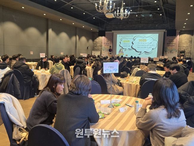 (원투원뉴스) 인천강화교육지원청은 22일 강화 에버리치 호텔에서 관내 초·중학교 교원 114명이 참석한 가운데 ‘2025학년도 강화 결이음교육과정 및 작은학교특색교육과정 성과공유회’를 개최했다.