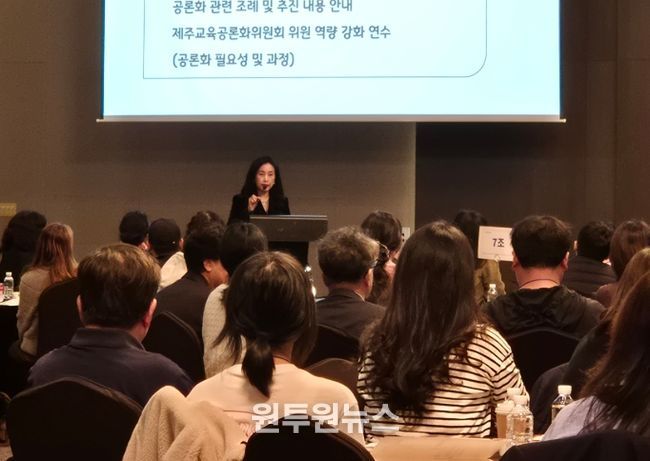 (원투원뉴스) 제주특별자치도교육청은 20일 제주한라대학교 컨벤션홀에서 도민참여단 100여 명이 참여한 가운데 제주교육공론화 제4호 의제인 ‘바람직한 교내 학생 스마트 기기 사용방안’에 대한 토론회를 개최했다.