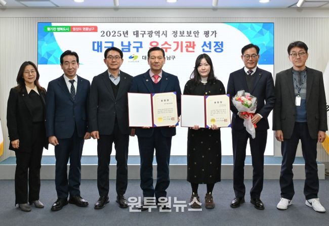 (원투원뉴스) 대구 남구는 대구시로부터 정보보안 역량을 인정받아 ‘2025년도 정보보안 평가’에서 우수기관으로 선정되어 대구광역시장 표창을 수상했다.