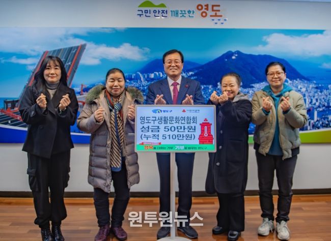 (원투원뉴스) 영도구생활문화연합회(회장 예은숙)는 지난 12월 22일 영도구를 방문하여 희망2026나눔캠페인 성금 50만 원을 전달하며 나눔 온도에 온기를 더했다.