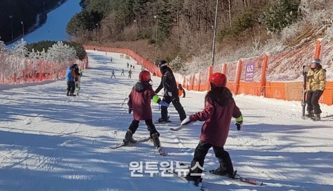 (원투원뉴스) 창수초등학교(교장 김경현)는 2025년 12월 17일부터 19일까지 2박 3일 동안 강원도 정선군 소재 하이원 리조트에서 3~6학년 학생 34명을 대상으로 ‘겨울계절체험학습 스키캠프’를 실시했다.