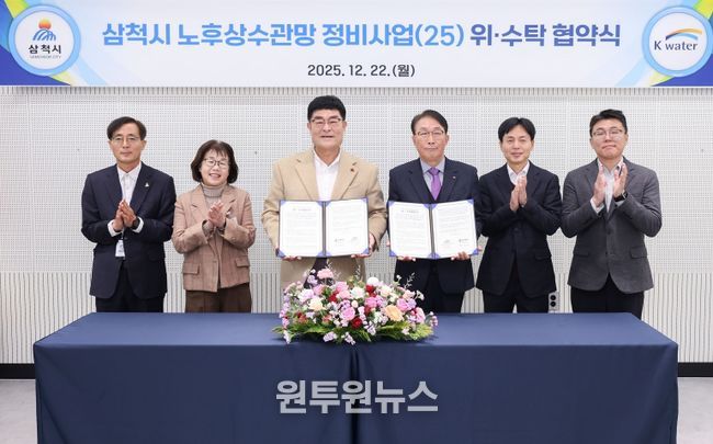 (원투원뉴스) 삼척시는 노후 상수관망 정비사업의 효율적인 추진을 위해 12월 22일 오전 11시, 삼척시청 소회의실에서 한국수자원공사(K-water) 한강유역본부(본부장 이선익)와 위수탁 협약을 체결했다.