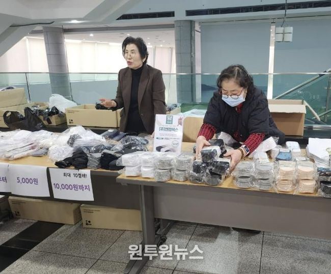 (원투원뉴스) 광주시는 최근 시청 청사 내에서 사회적경제 기업 ‘엔젤싹스’의 양말 현장 판매를 진행하며 장애인 근로자 일자리 보호를 위한 판로 지원에 나섰다.