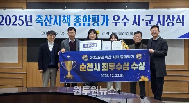 (원투원뉴스) 순천시는 2025년 전라남도 축산시책 종합평가에서 최우수상을 수상했다고 23일 밝혔다.
