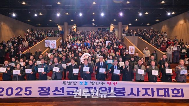 (원투원뉴스) 정선군은 12월 23일 정선문화예술회관 3층에서 한 해 동안 지역 곳곳에서 이웃사랑을 실천해 온 자원봉사자들을 격려하고 자원봉사 문화 확산을 도모하기 위해 ‘2025 정선군자원봉사자대회’를 개최했다.