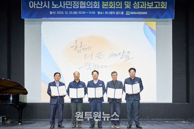 (원투원뉴스) 아산시 노사민정협의회(위원장 오세현 시장)는 23일 모나밸리에서 협의회 위원과 기업 관계자 등 100여 명이 참석한 가운데 ‘2025 아산시 노사민정협의회 성과보고회’를 열고, 올해 협력사업 성과를 공유했다.