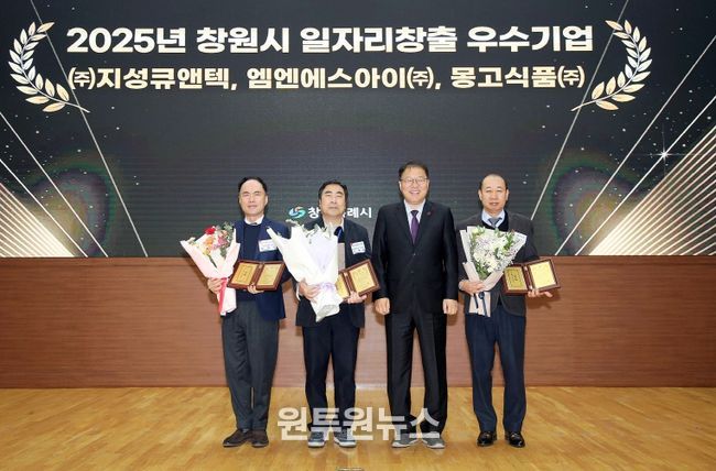(원투원뉴스) 창원특례시는 23일 어려운 경제 여건에도 지역 일자리 창출을 위해 노력한 3개 기업을 ‘2025년 일자리창출 우수기업’으로 선정하고 표창패를 수여했다고 밝혔다.